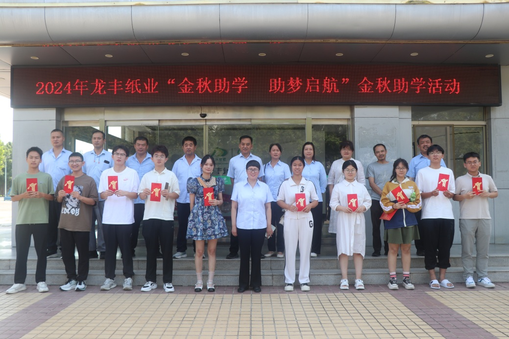 金秋蕩漾赤子心,助學(xué)放飛學(xué)子夢。為落實公司對員工及家屬的關(guān)心關(guān)愛,激勵干部員工奮發(fā)向上,助力莘莘學(xué)子筑夢未來,8月23日下午,龍豐紙業(yè)舉行2024年“金秋助學(xué) 助夢啟航”金秋助學(xué)活動,公司副總經(jīng)理馮東望,紀(jì)委書記、工會主席周霞以及部分新錄取大學(xué)生和家長參加座談會。